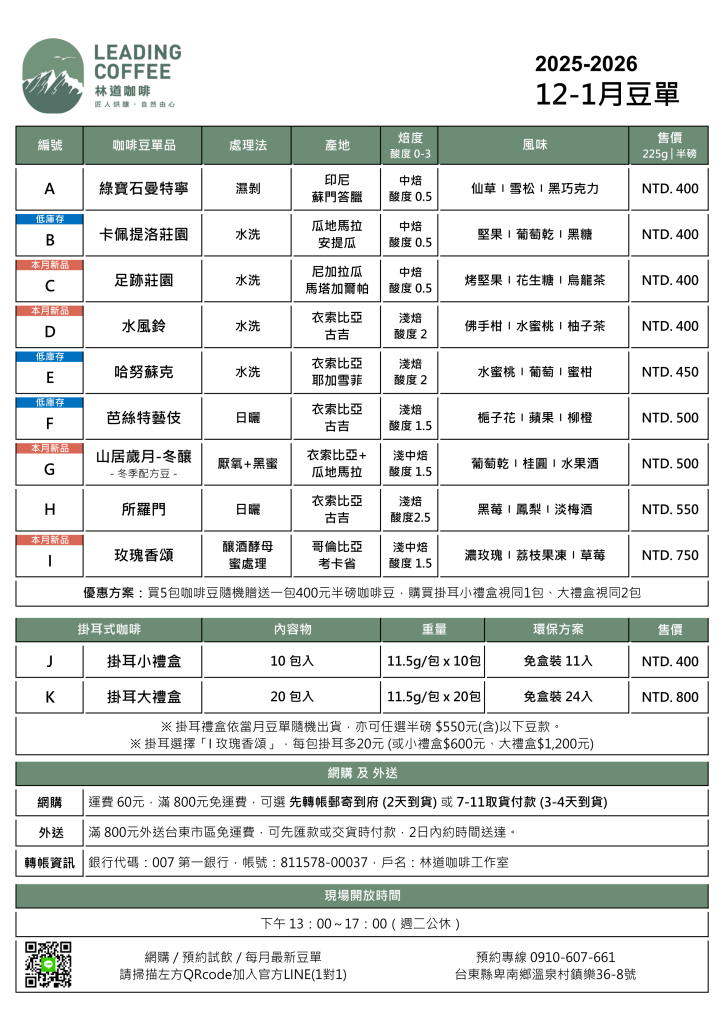每月底固定會更新豆單,會上架 2~3 支新豆